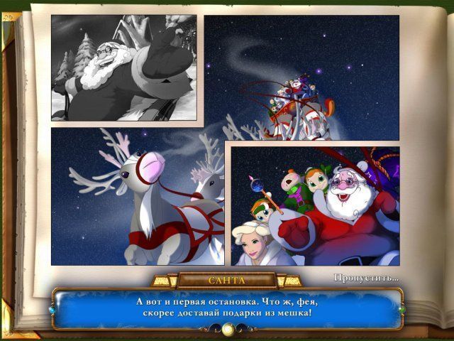 На каждом из уровней этой красочной игры-головоломки вам предстоит решать самые разнообразные задачки: находить рассыпавшиеся подарки, разыскивать различные предметы по контурам и даже искать предметы в полной темноте, подсвечивая себе лишь волшебной палочкой. Путешествие будет непростым, и оно таит множество сюрпризов — то в санях кончится волшебная энергия, то эльфы рассыпят все подарки.