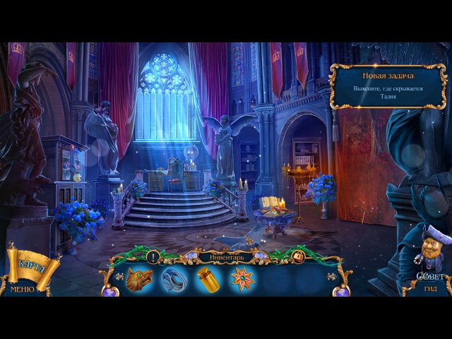 Используйте полезные вещицы из инвентаря. Для сложных предметов потребуются дополнительные действия, прежде чем вы сможете ими воспользоваться. В случае чего заглядывайте в прохождение или кликайте на гнома внизу экрана — мудрый маленький человечек не поскупится на дельные советы! На карте будут отмечены текущие задачи и ваше местонахождение.