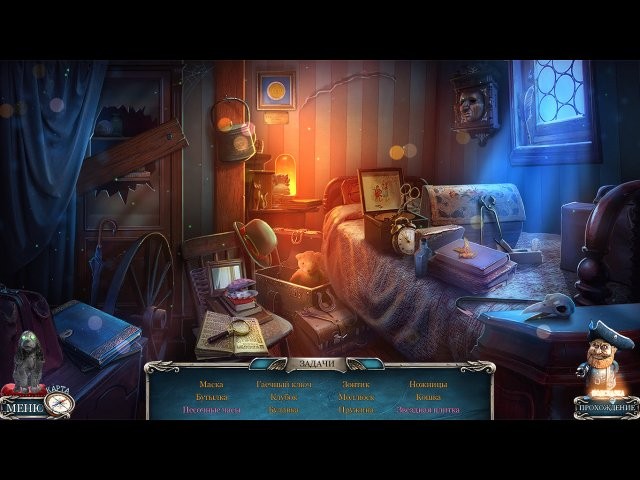 Выбирайте комфортный режим: "Простой", "Детективный", "Сложный" или "Особый", который можно настроить на свое усмотрение, — и помогите девушке выпутаться из западни! В игре вас ждут головоломки, поиск предметов и мини-игры. Используйте полезные вещицы из инвентаря, подсказки, заглядывайте в прохождение и карту — на ней указаны ваше местонахождение, доступные действия и локации, где находятся статуэтки, которые вы пока не нашли.